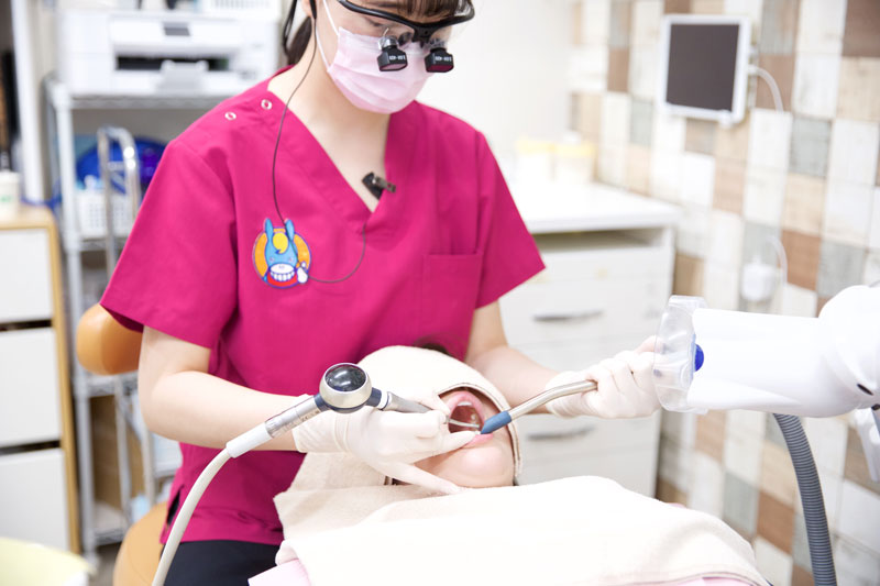 肉眼では見逃してしまうような小さな変化も逃さないよう、歯科医師・歯科衛生士ともに拡大鏡(ルーペ)を使って診療を行っています。